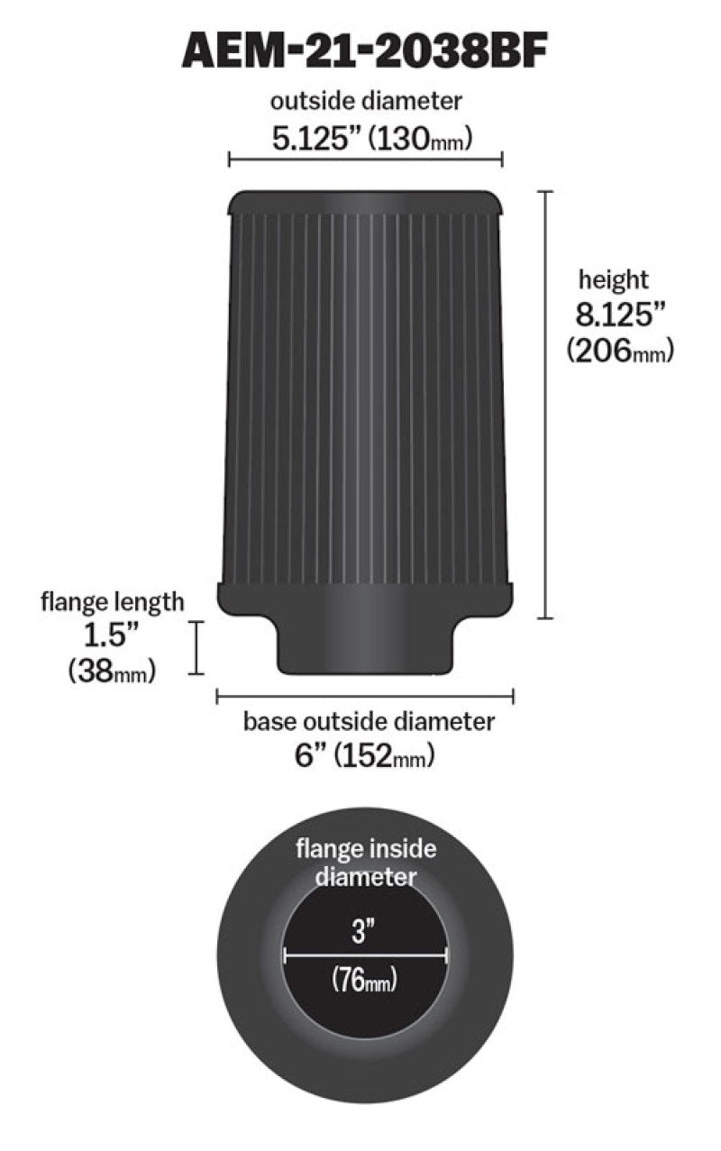 Description: AEM 3 inch x 8 inch DryFlow Air Filter