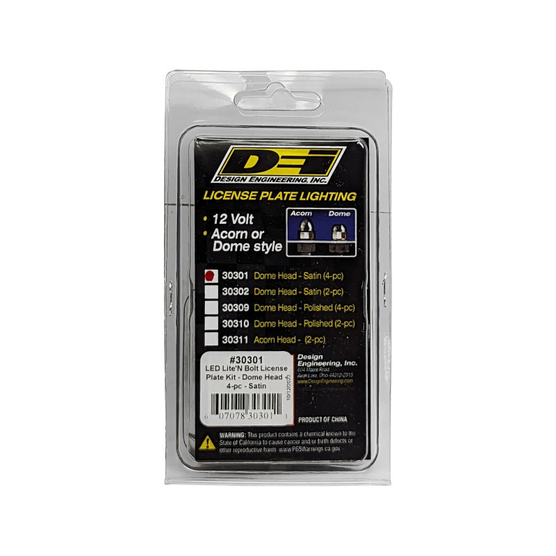 Description: DEI LED LiteN Boltz License Plate Lighting Kit - Dome Head - 4pc - Satin